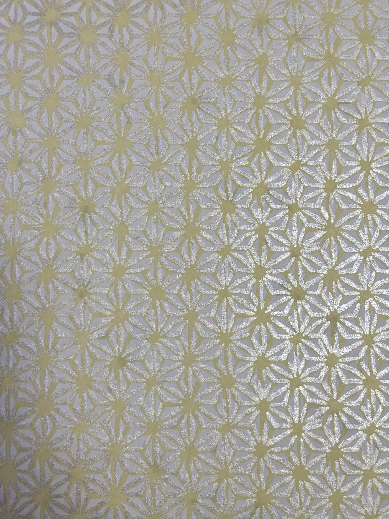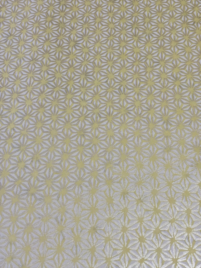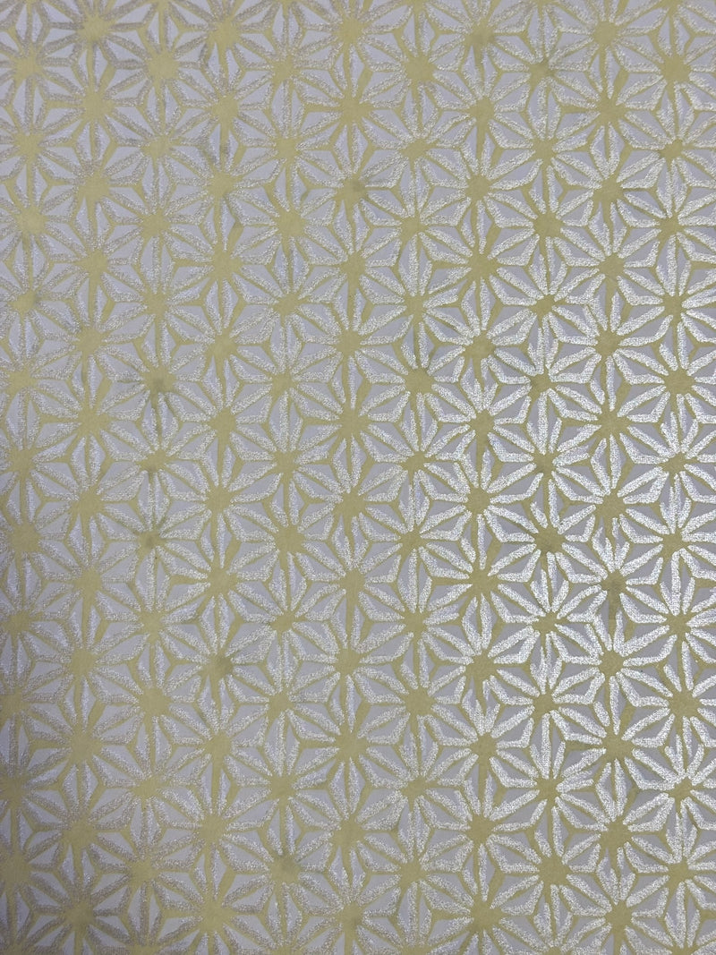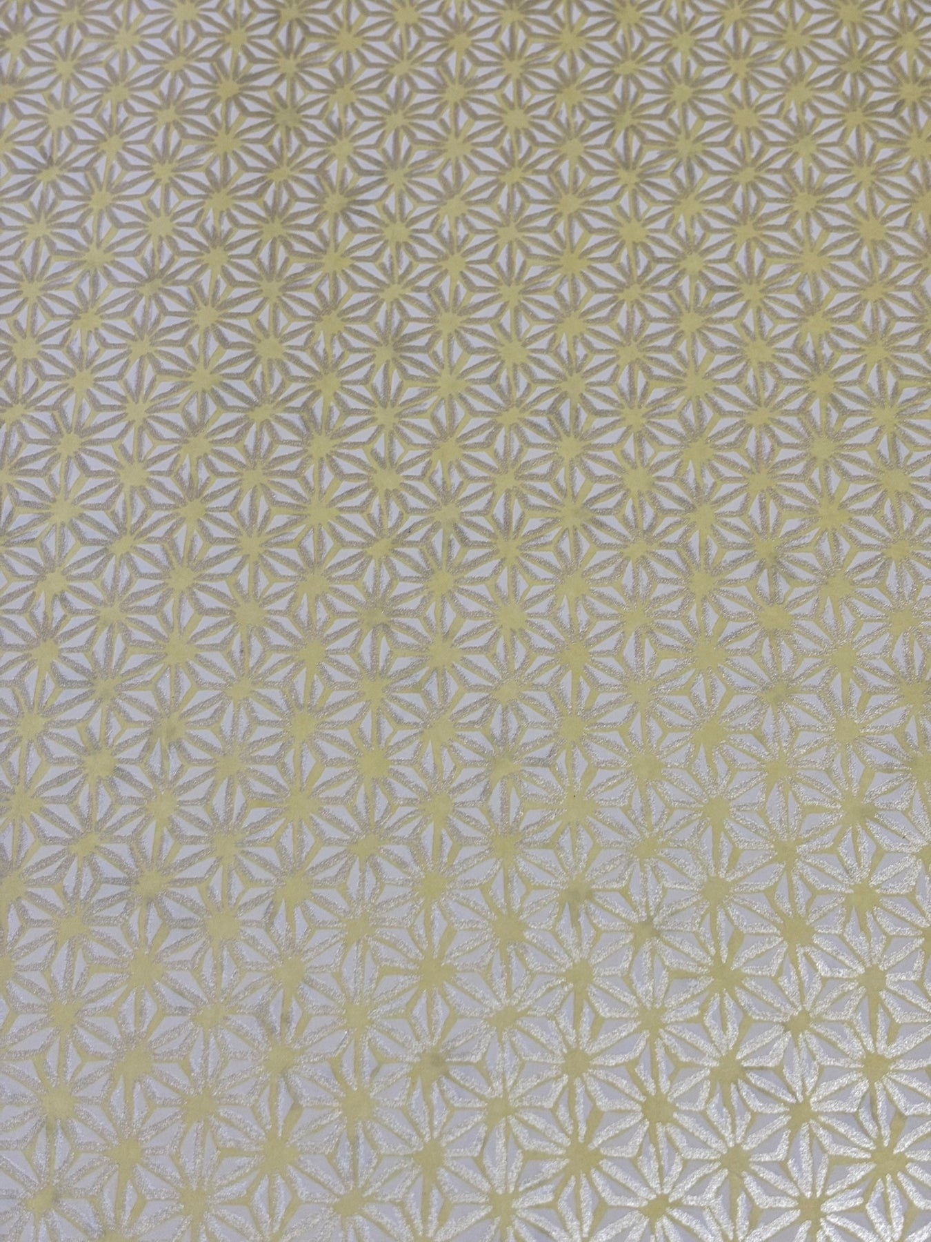 Japanese Yuzen Chiyogami Washi Paper KW116 features the traditional Asanoha (hemp leaf) pattern, symbolising growth and protection. This version showcases a crisp white geometric star design set against a soft yellow background, creating a clean and uplifting aesthetic. Perfect for origami, scrapbooking, card making, and elegant gift wrapping, this paper brings both tradition and charm to your creative projects.