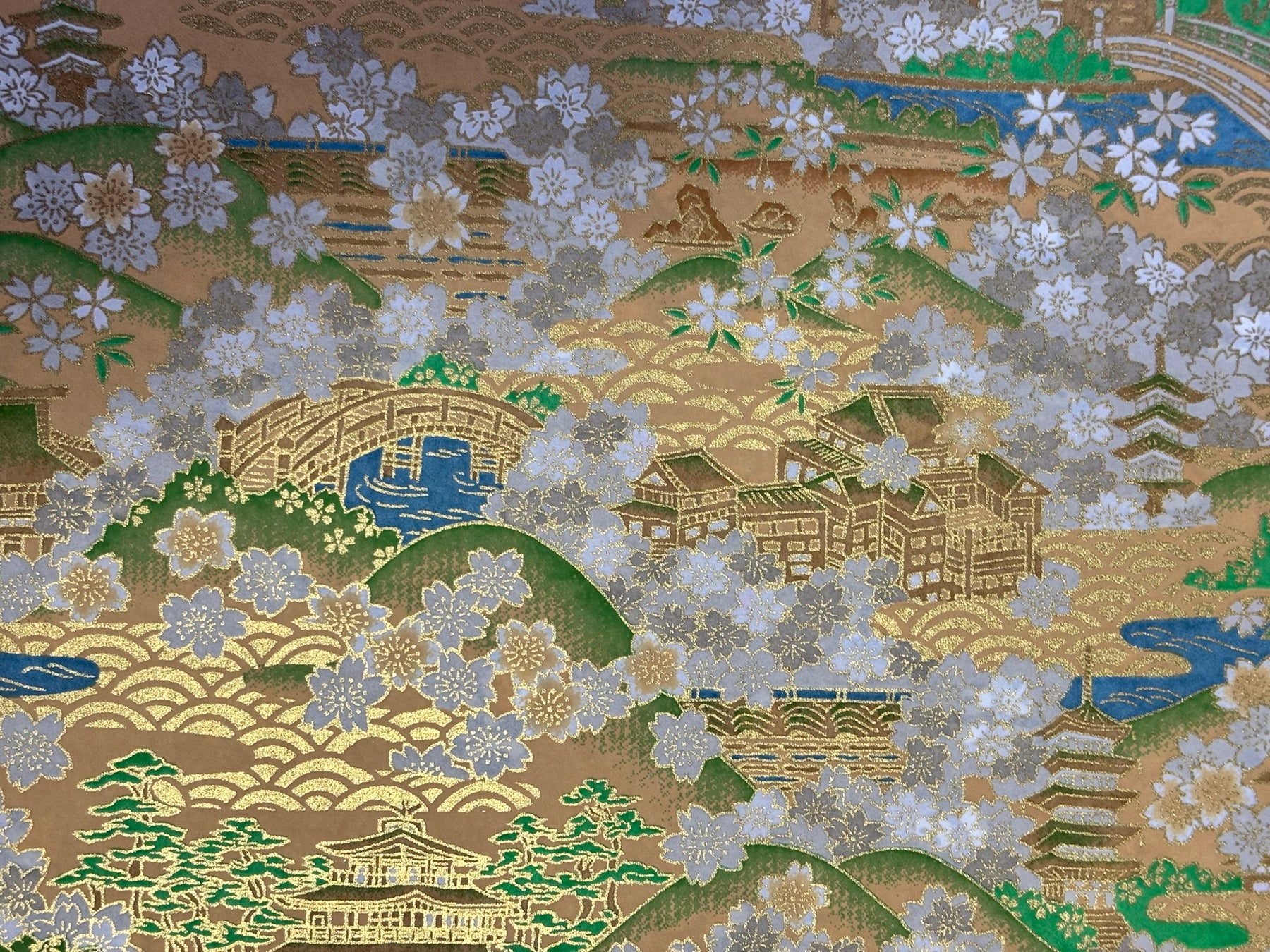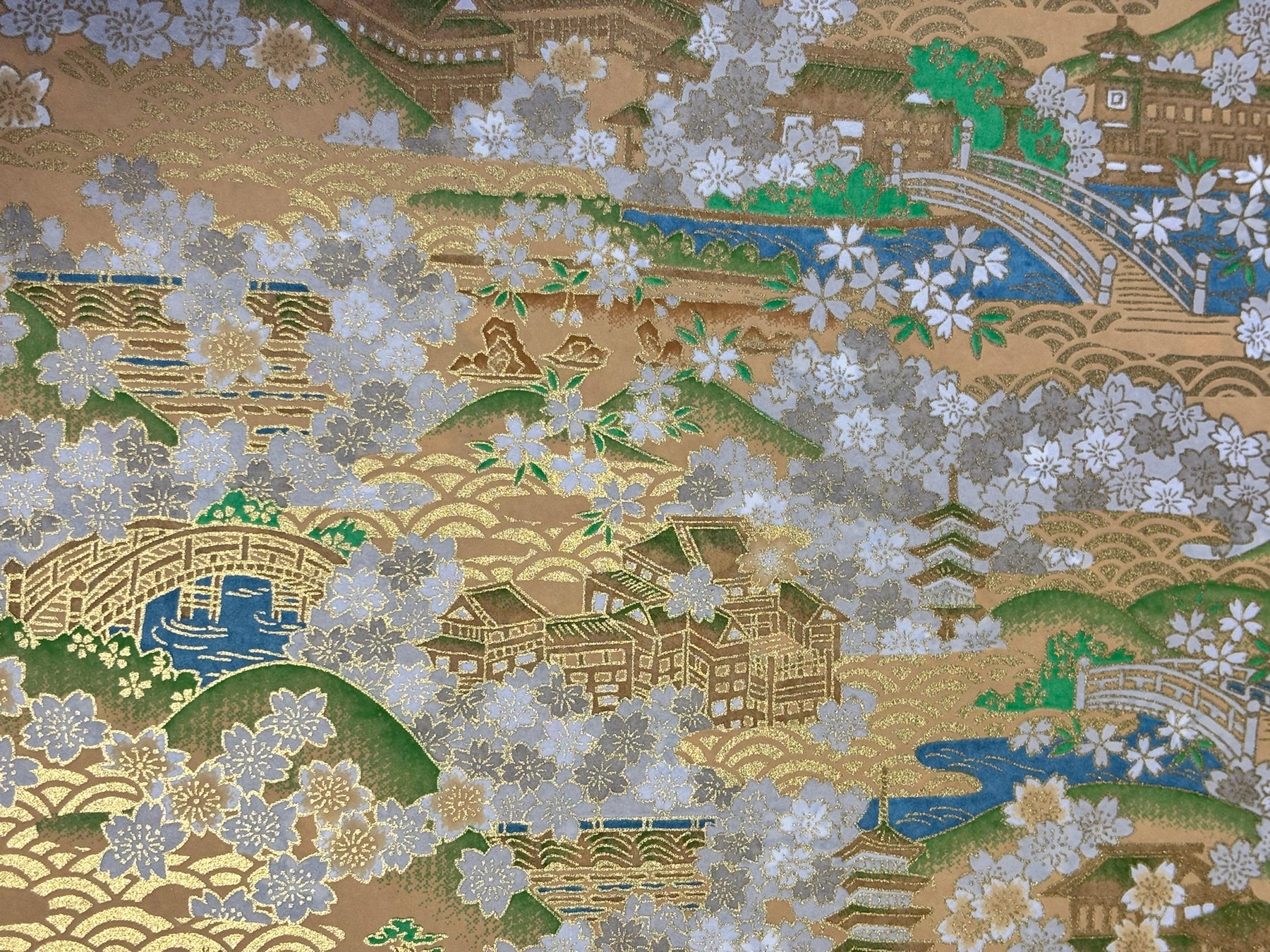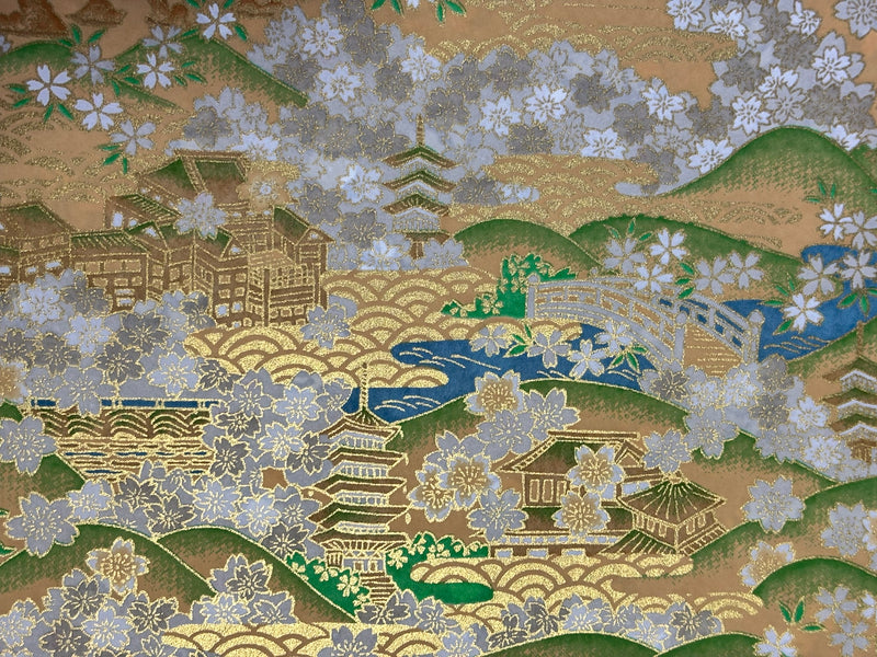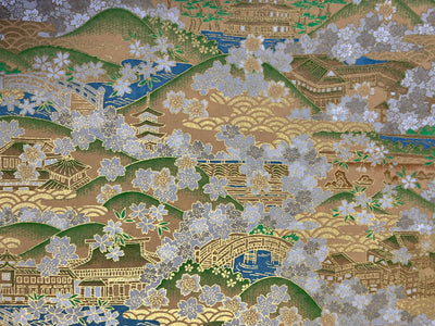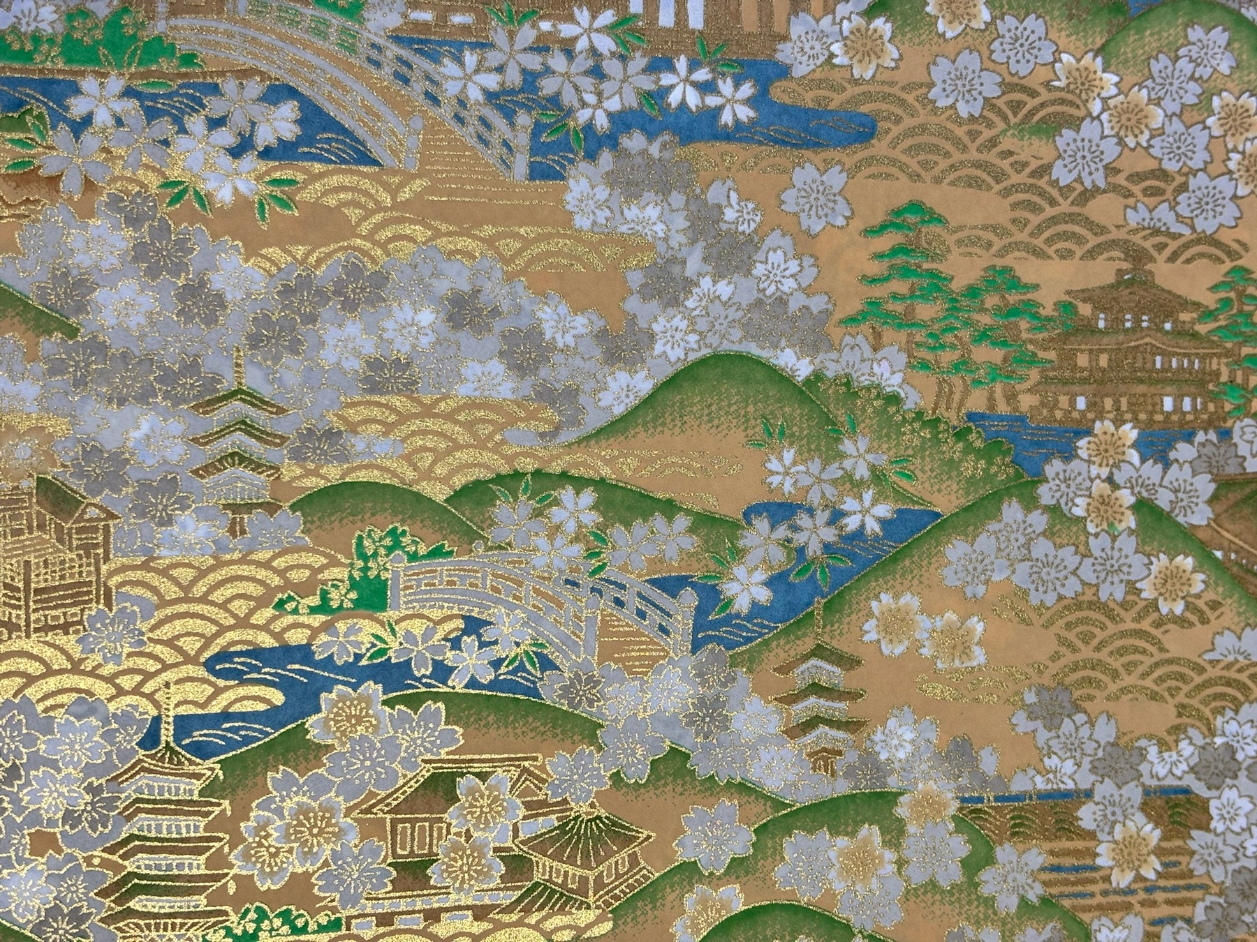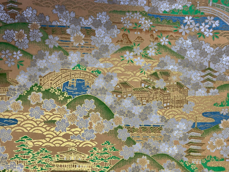 Japanese Yuzen Chiyogami Washi Paper KW121 – Golden Temple & Sakura Landscape