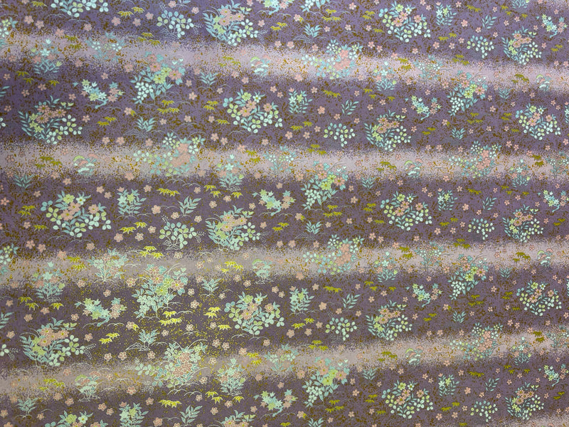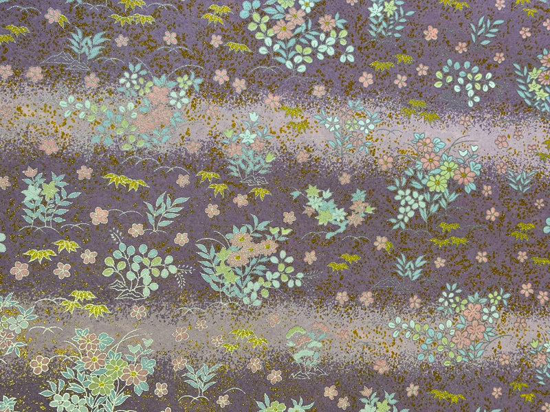 Japanese Yuzen Chiyogami Washi Paper – KW123 – Purple Gradient with Floral Vines and Gold Flecks
