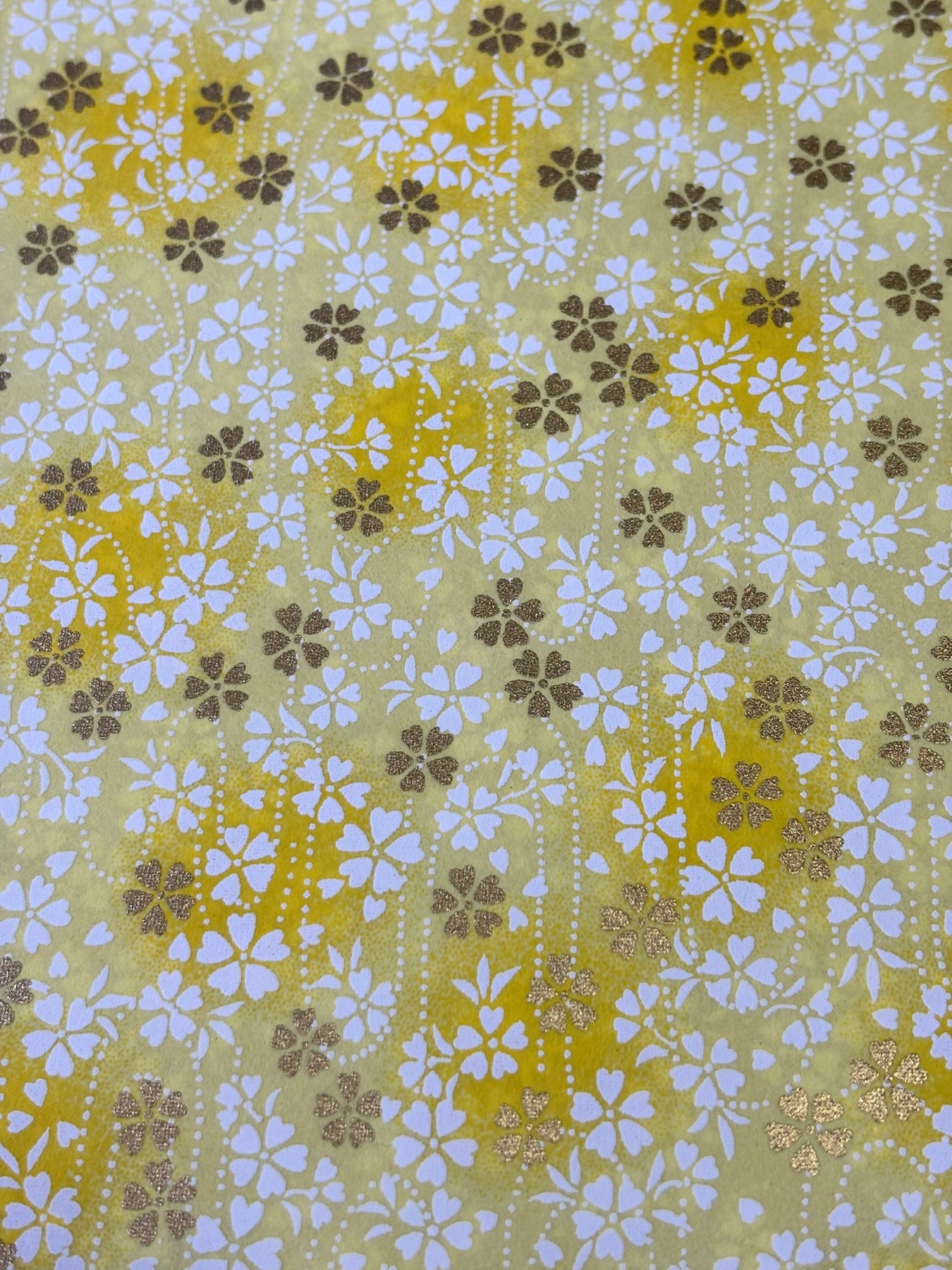 Japanese Yuzen Chiyogami Washi Paper – KW306 – White & Gold Sakura on Yellow Wash