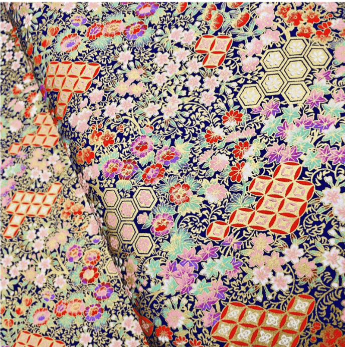This Y1232 navy floral and geometric Yuzen washi is wonderful for folding statement origami models, creating luxurious greeting cards, decorating journals, or adding a richly detailed Japanese touch to your next creative project. The combination of deep navy, colourful florals and gold-style highlights makes every piece feel opulent and special.
