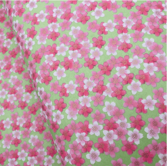 Yuzen washi is created using traditional Japanese printing techniques, resulting in vibrant colours, fine pattern detail and a beautiful tactile finish. With its fresh green ground and layered pink blossoms, this Y1201 design is perfect for spring, nature-inspired and feminine projects.