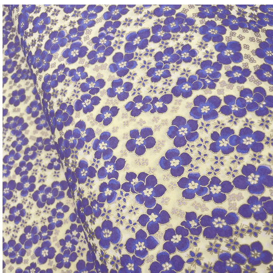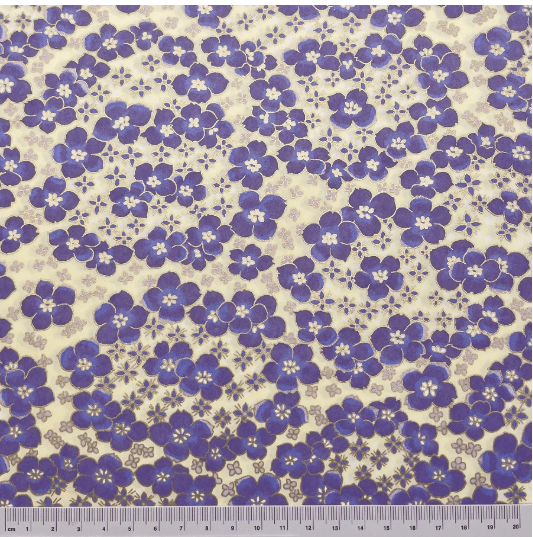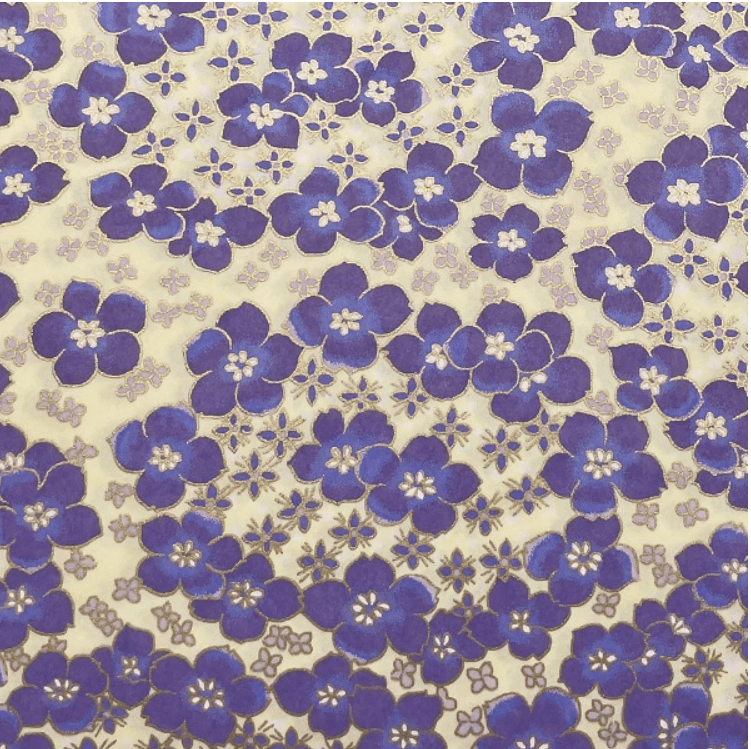 Yuzen washi is created using traditional Japanese printing techniques, resulting in vibrant colours, crisp pattern detail and a beautiful tactile finish. With its calm cream ground and cool purple tones, this Y1160 design is perfect for projects that need a gentle, refined floral pattern.
